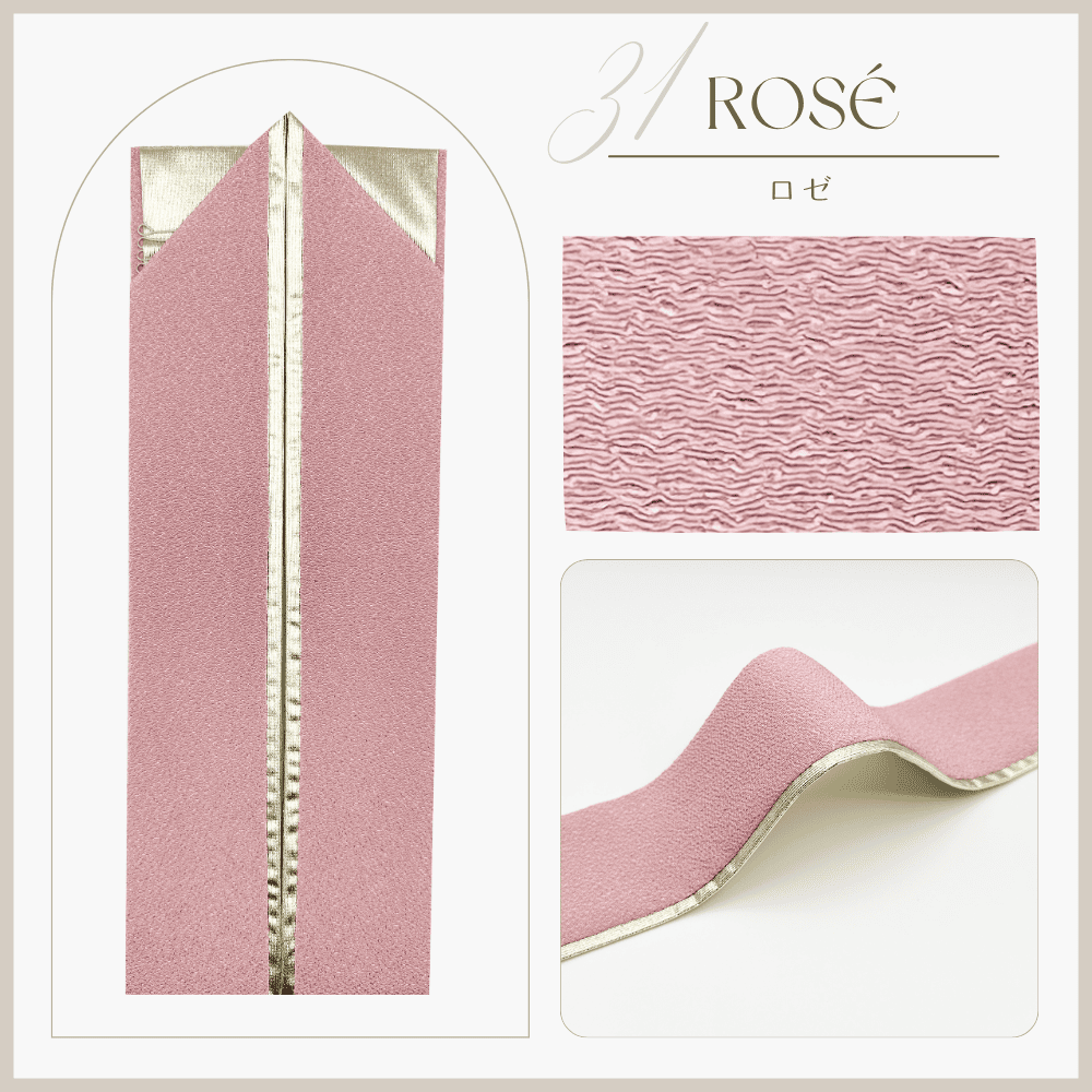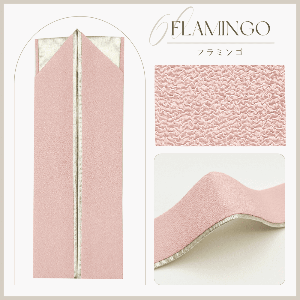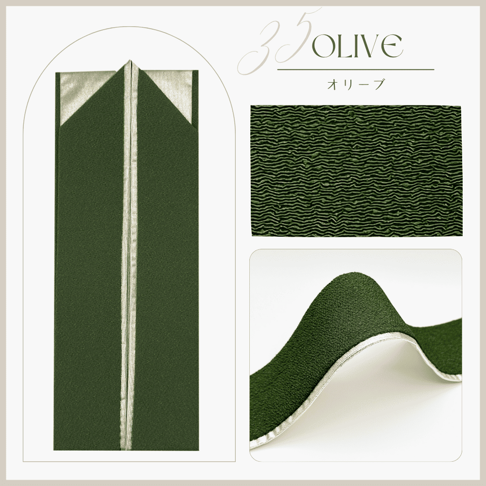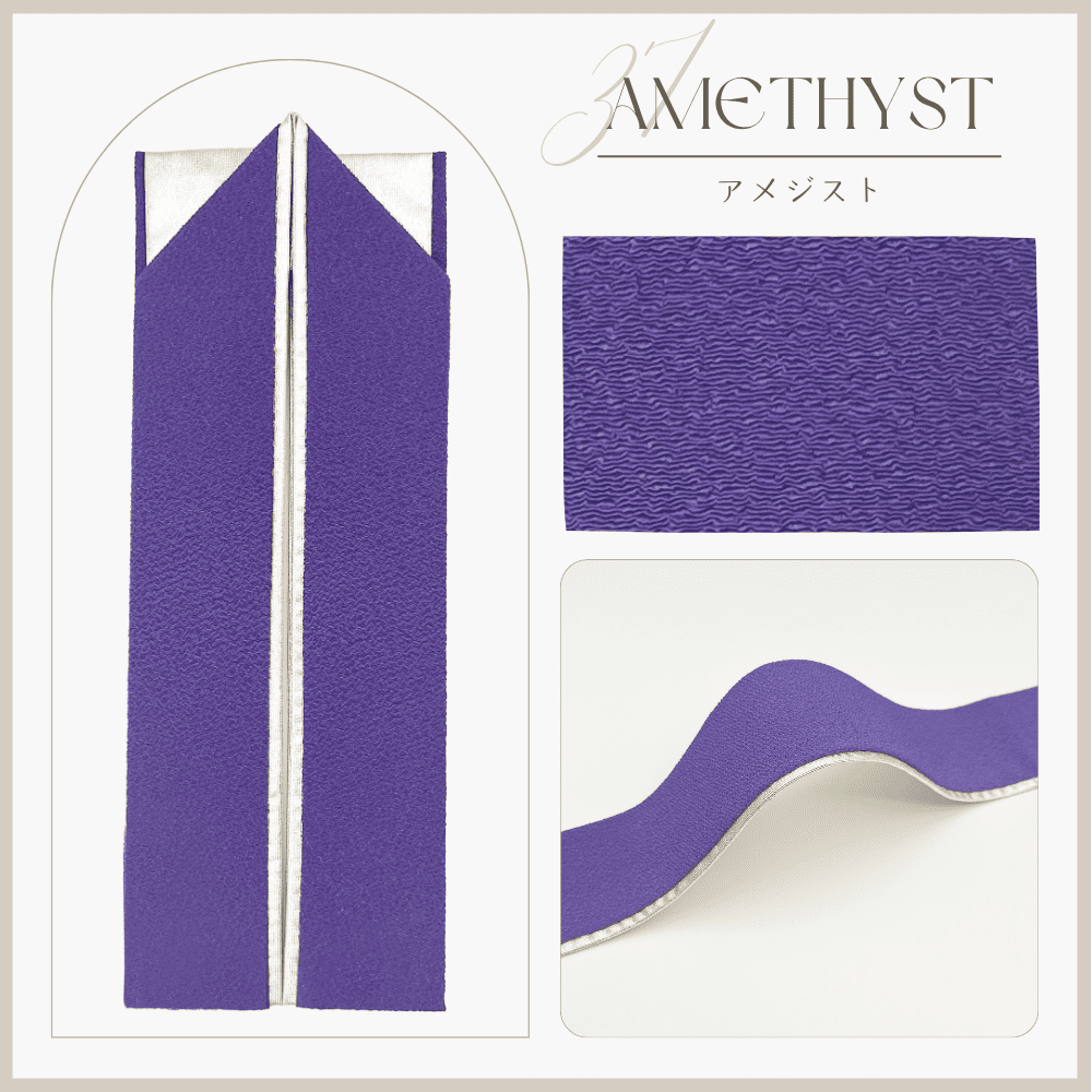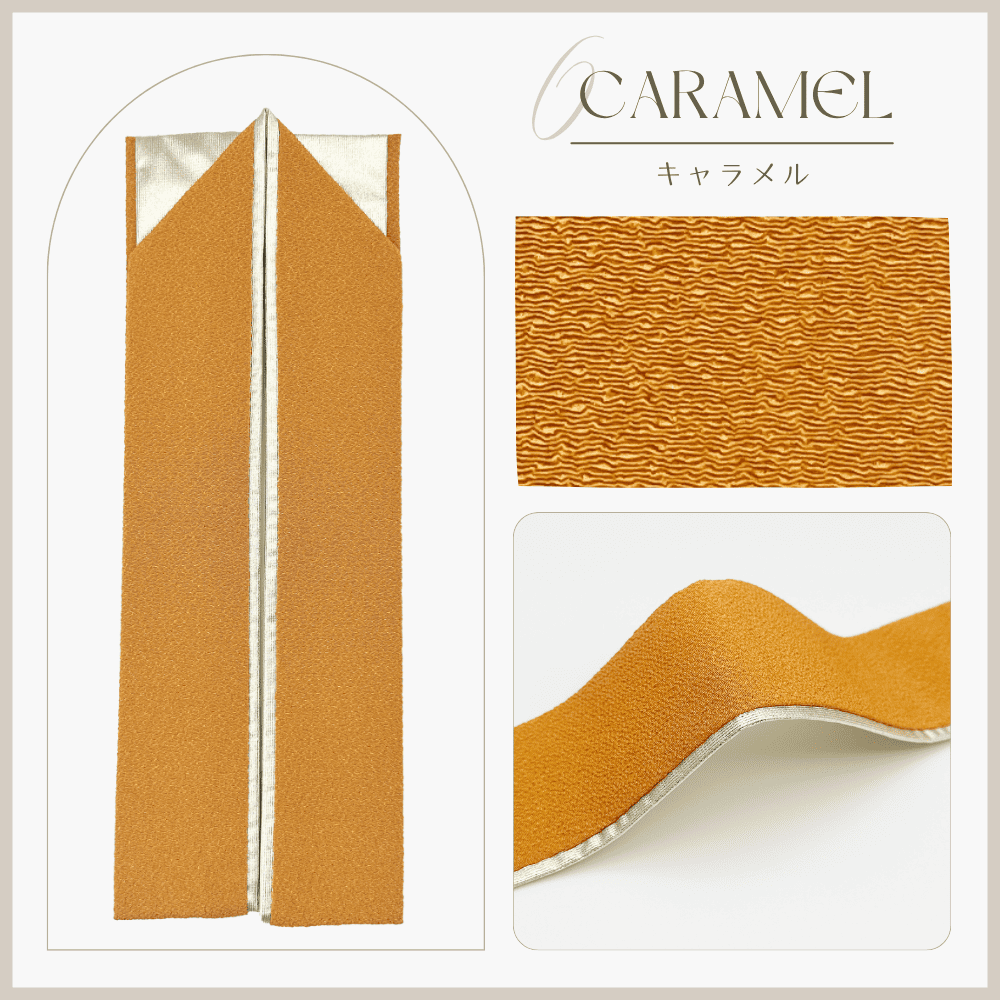 1本で4WAYの使い方ができるリバーシブル重ね衿。振袖・袴・訪問着・留袖・色無地・小紋などフォーマル〜カジュアルで幅広く活躍する日本製ちりめんの重ね衿です。全30色展開(暖色/寒色/モノトーン)。晴れの日の写真映えを意識した差し色から、上品なモノトーンまで揃えています。