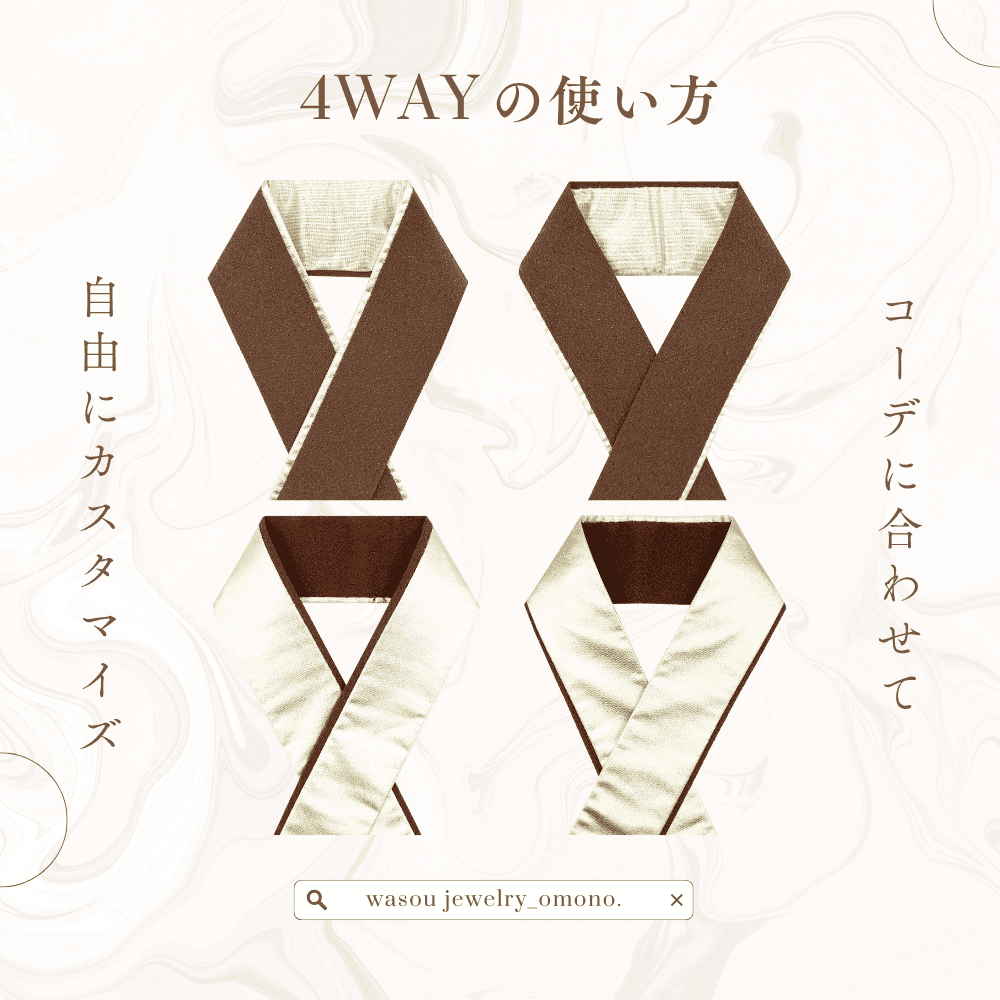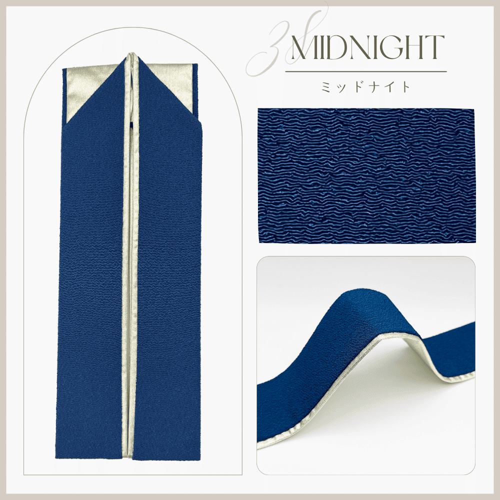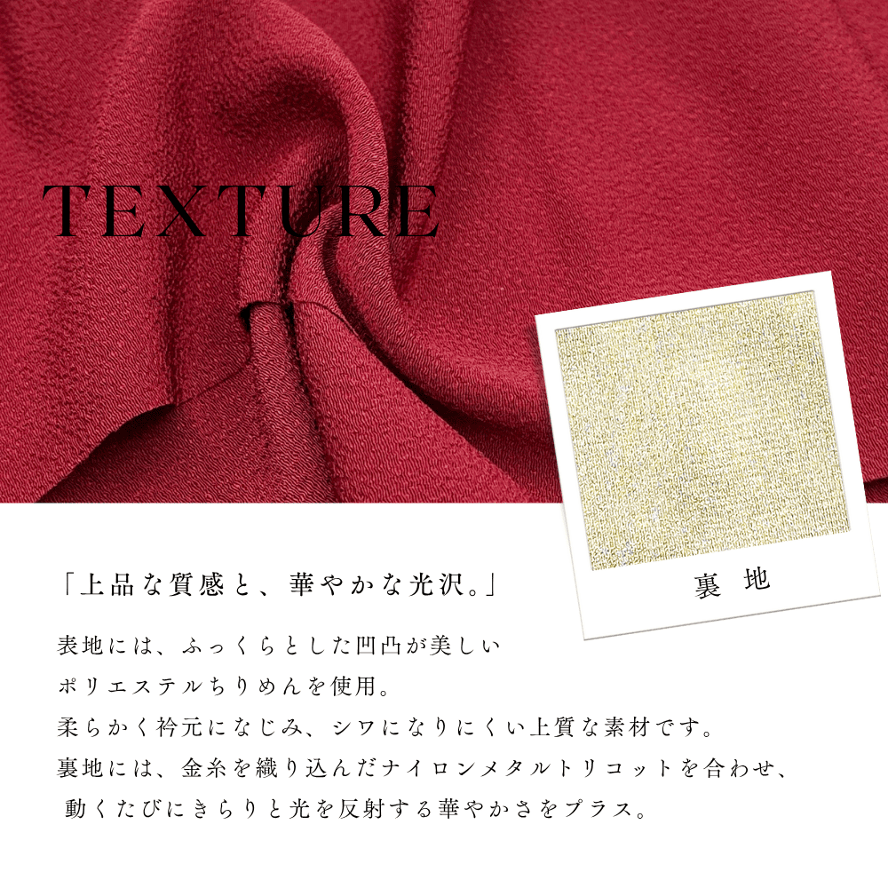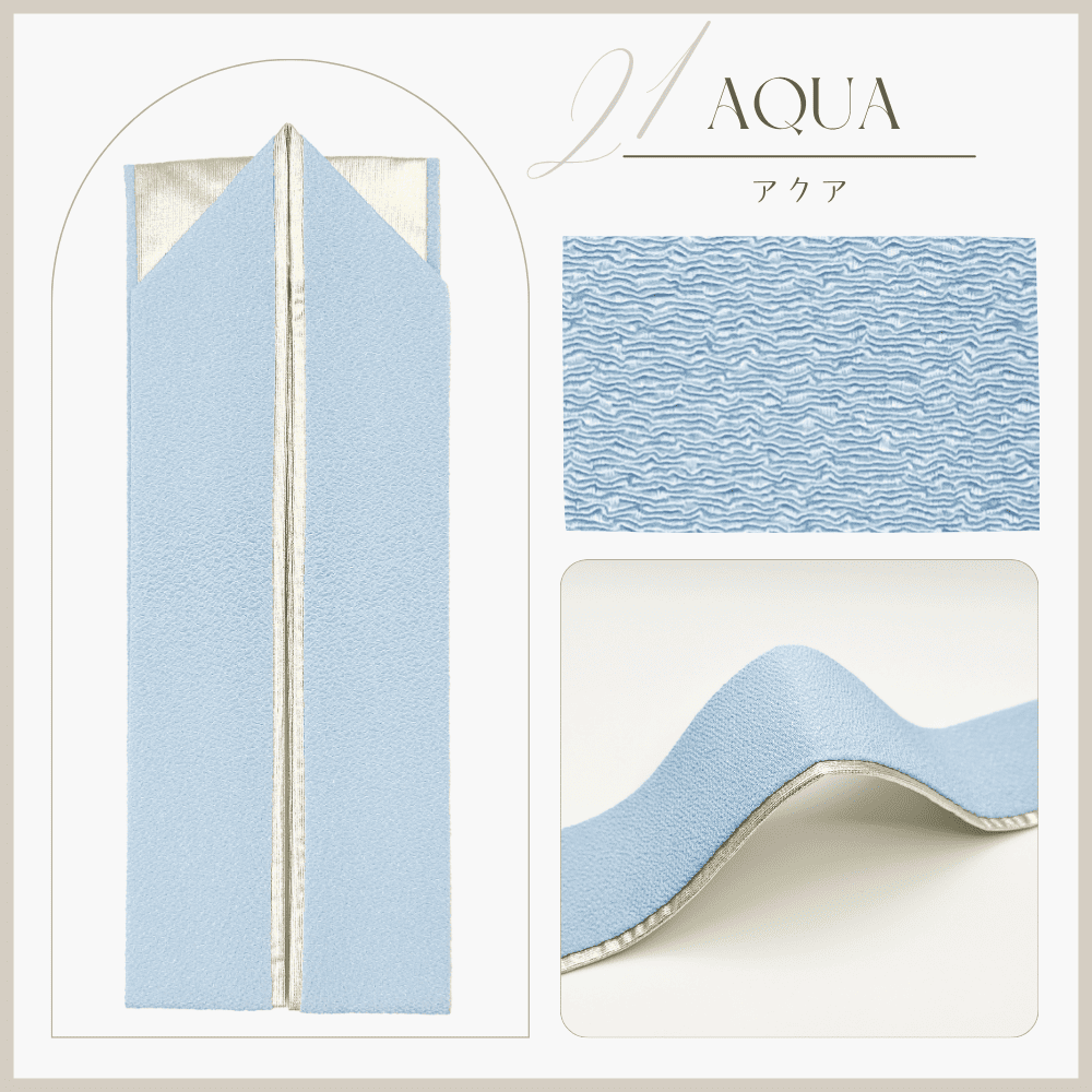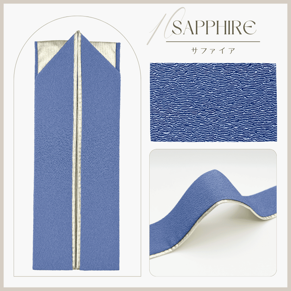 1本で4WAYの使い方ができるリバーシブル重ね衿。振袖・袴・訪問着・留袖・色無地・小紋などフォーマル〜カジュアルで幅広く活躍する日本製ちりめんの重ね衿です。全30色展開(暖色/寒色/モノトーン)。晴れの日の写真映えを意識した差し色から、上品なモノトーンまで揃えています。
